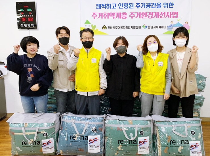 한전KDN(주) 천안지사(지사장 김병일)는 10월 7일(금) 천안시주거복지종합지원센터를 방문, 취약계층의 따뜻한 겨울나기를 지원하기 위해 200만원 상당의 이불세트를 제공하였습니다.