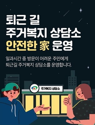 천안시와 천안시주거복지종합지원센터는 일과시간 중 주거복지 상담을 받기 어려우신 시민 여러분을 위하여 매 주 월요일 저녁 6시~7시30분(18시~19시30분) 주거복지 상담소 "안전한 家"를 운영합니다.