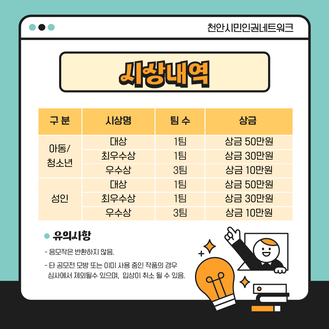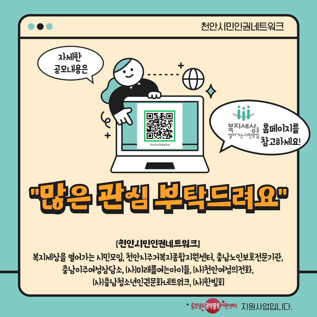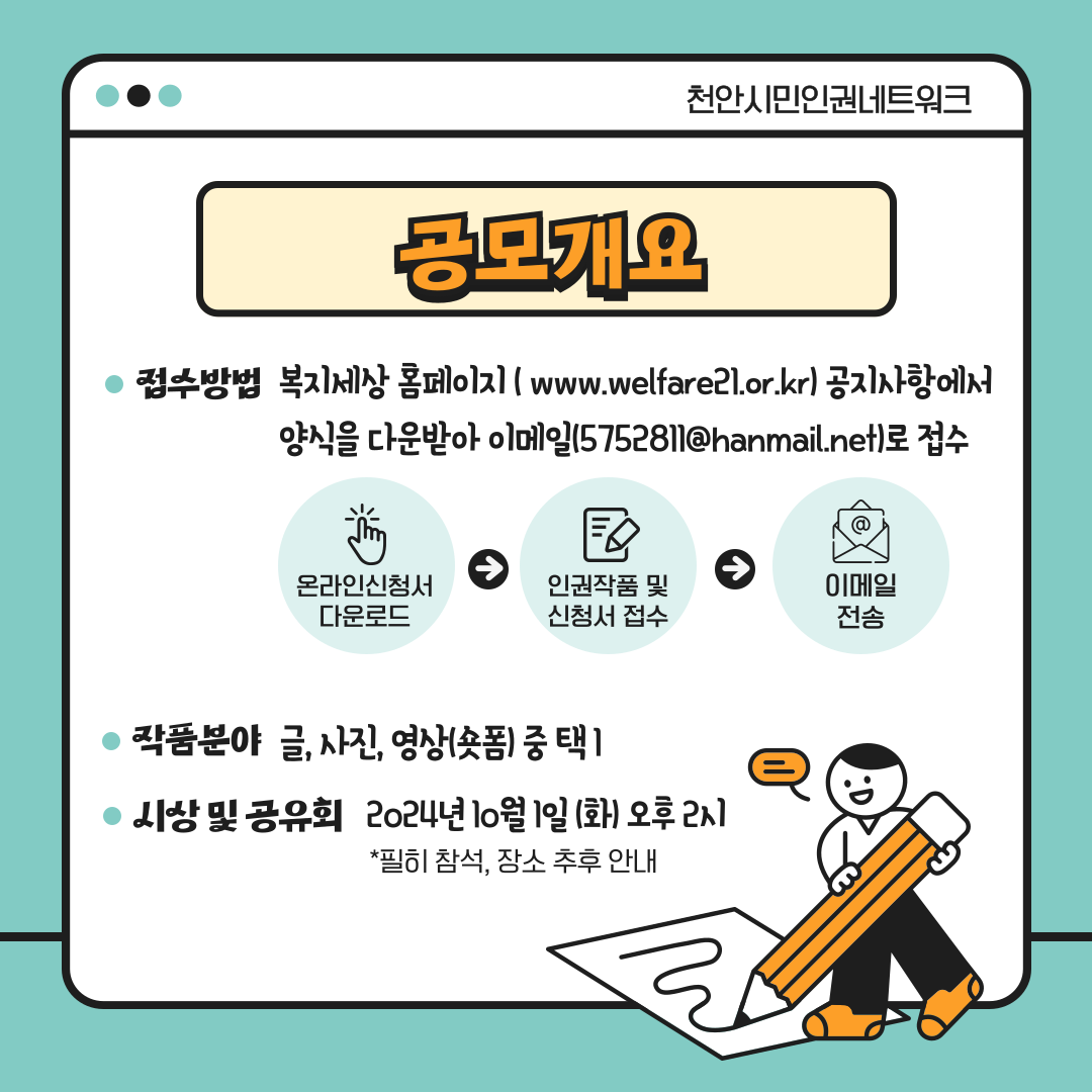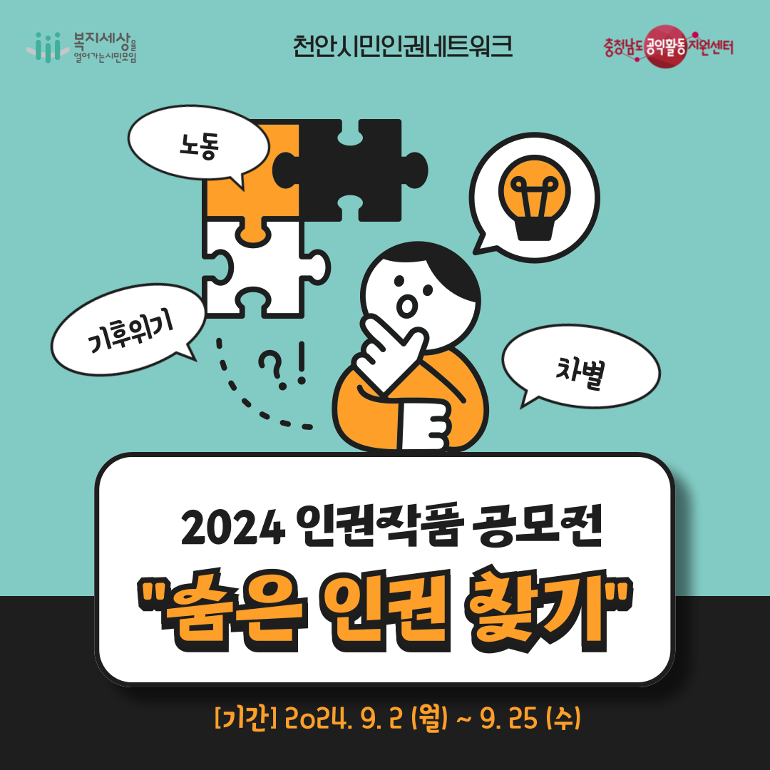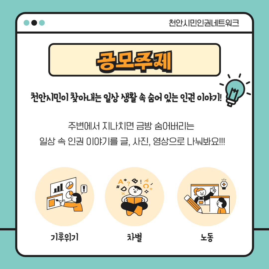 천안시민인권네트워크에서 2024 인권작품 공모전을 진행합니다.