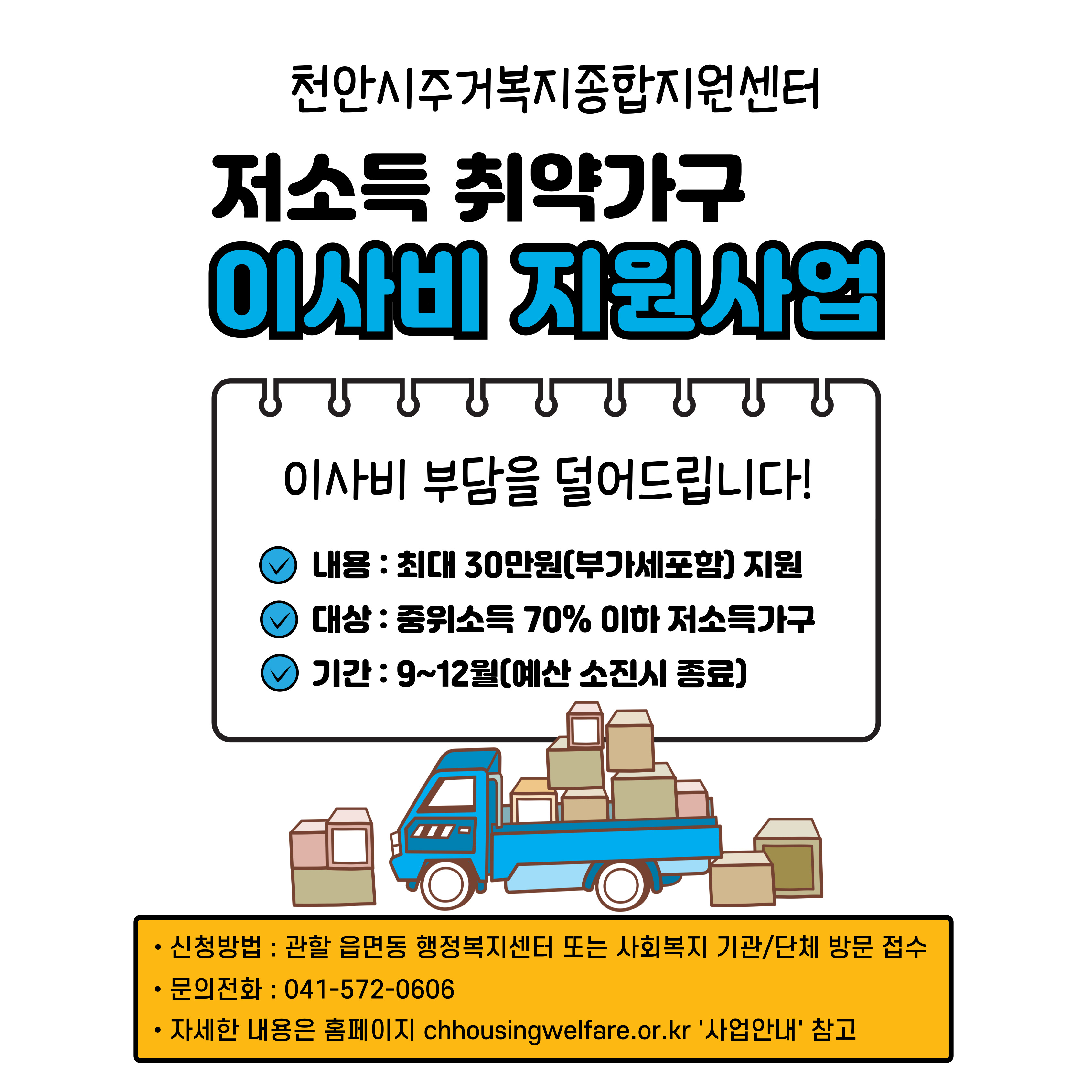 1) 이사업체가 카드결제 또는 세금계산서 발행이 가능한 업체라야 지원 가능