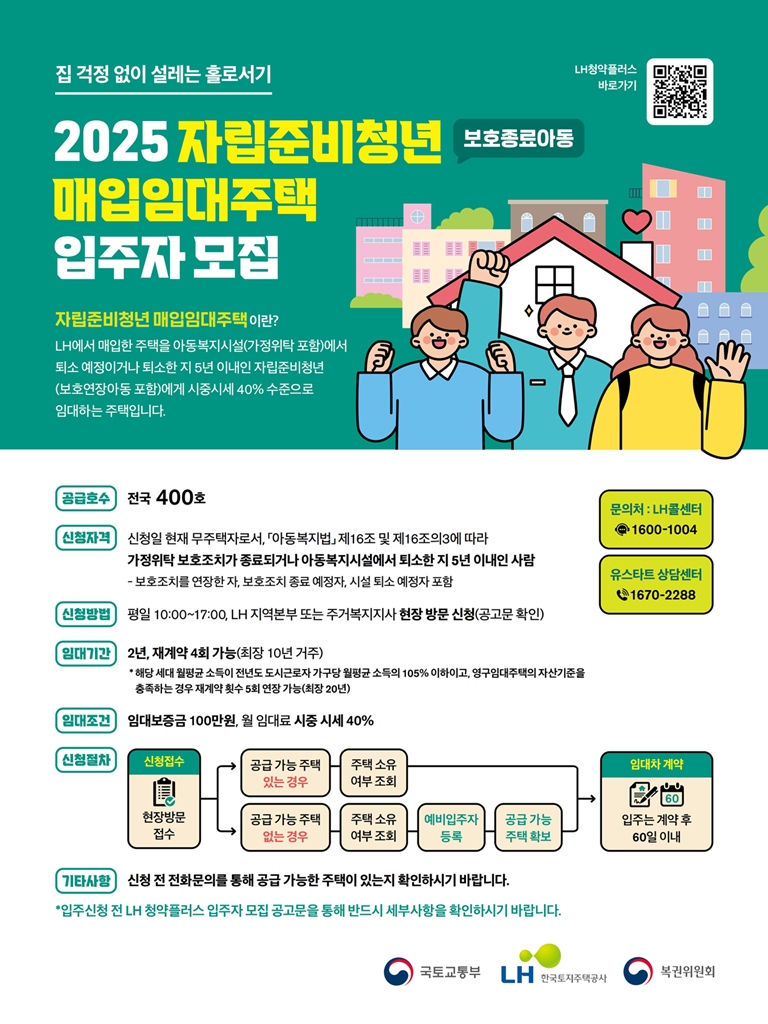 자립준비청년(보호종료아동) 매입임대 입주자 수시모집 공고를 공유합니다.
