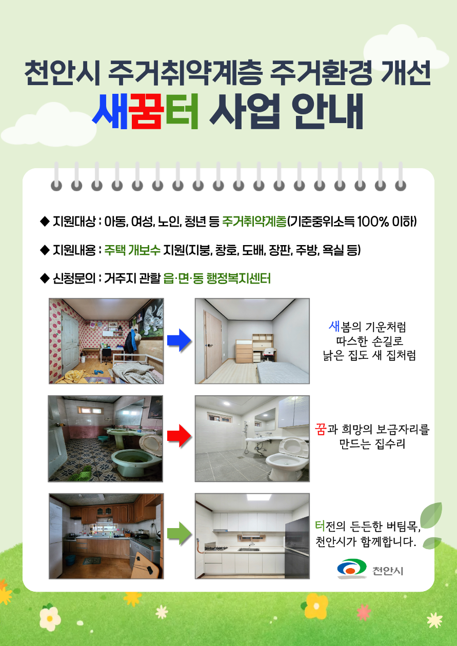 천안시의 주거취약계층 주거환경 개선사업 <새꿈터>입니다.