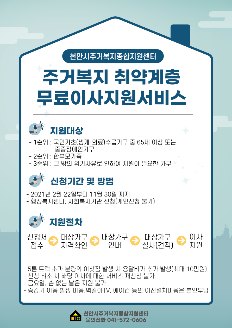 천안시주거복지종합지원센터 사업안내 (0) | 2021.07.29 |