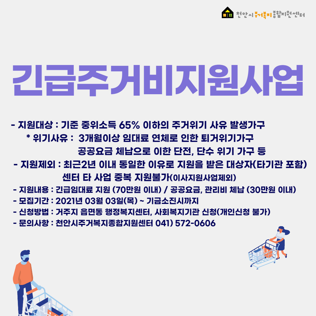 - 문의사항 : 천안시주거복지종합지원센터 041)572-0606