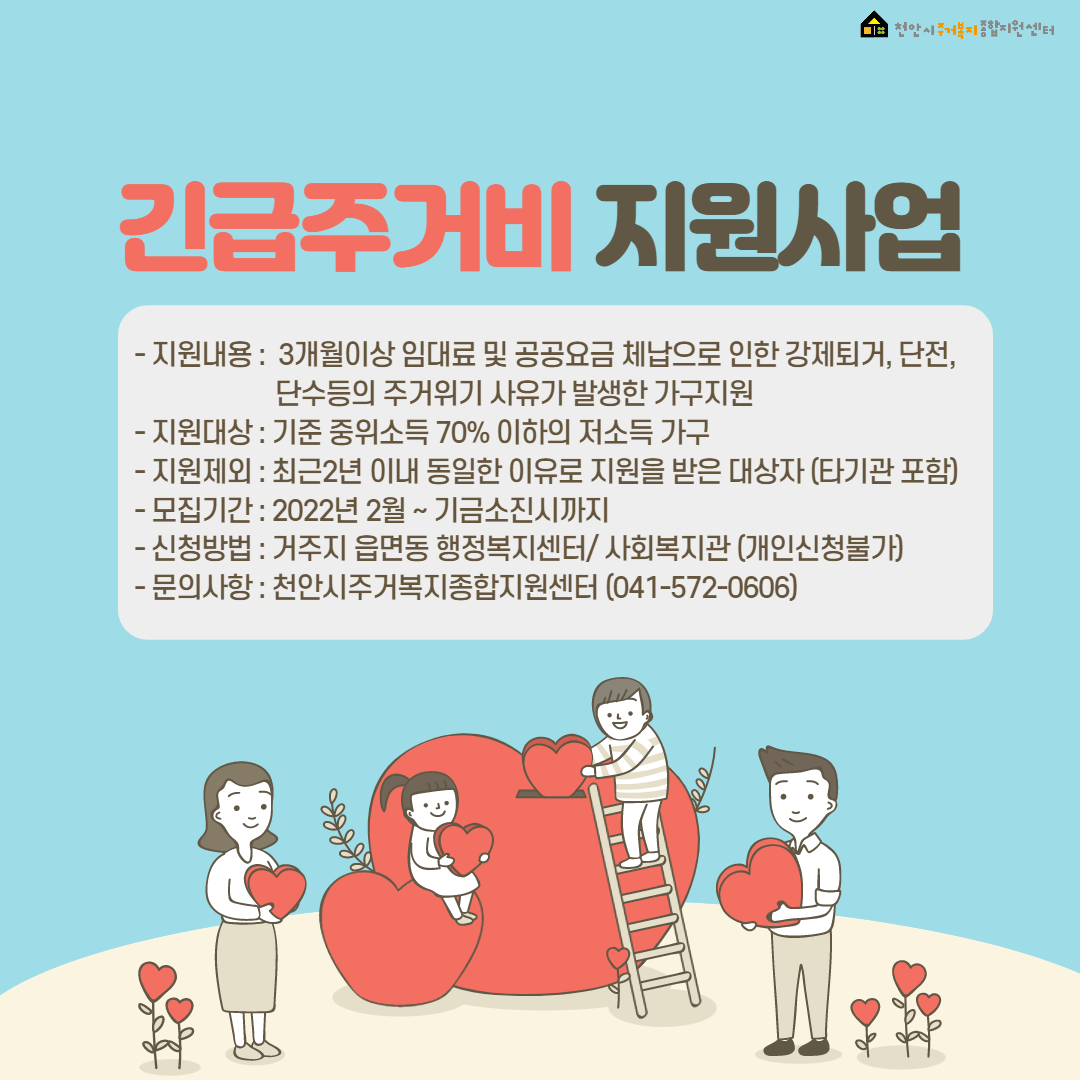- 천안시주거복지종합지원센터 타 사업 중복 지원불가(이사 및 난방비 지원 제외)
