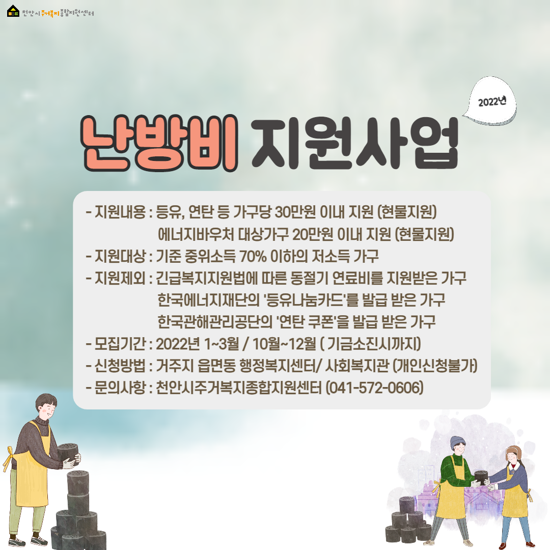- 등유, 연탄 등 가구당 30만원 이내 지원
