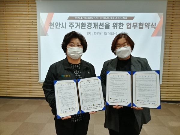 천안시주거복지종합지원센터와 한줄두줄나눔봉사단이 주거취약계층 주거환경 개선을 위한 업무협약을 체결하였습니다.