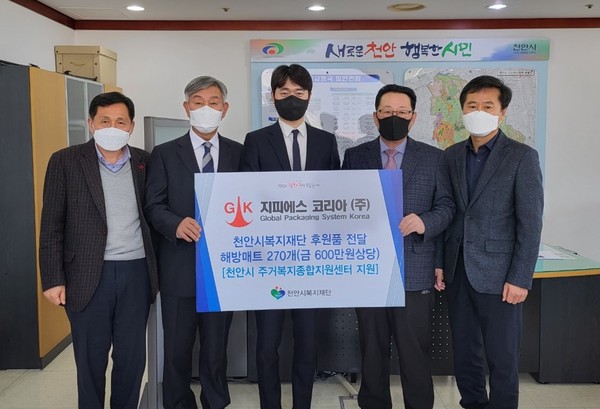 (주)지피에스코리아가 천안시 주거취약계층을 위해 욕실매트 270개를 기부하였습니다.