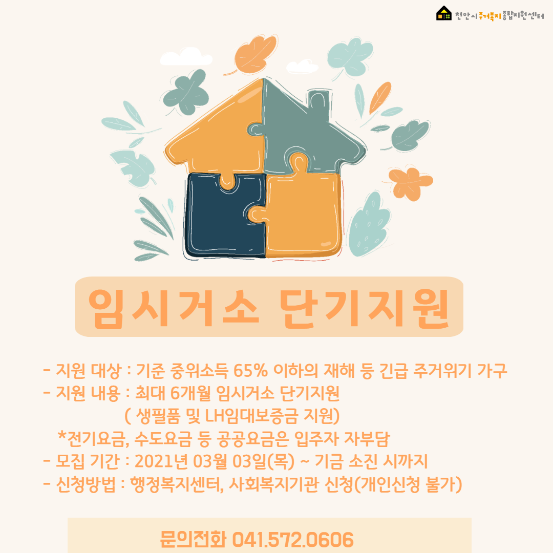 ● 천안시주거복지종합지원센터 임시거소 단기지원사업