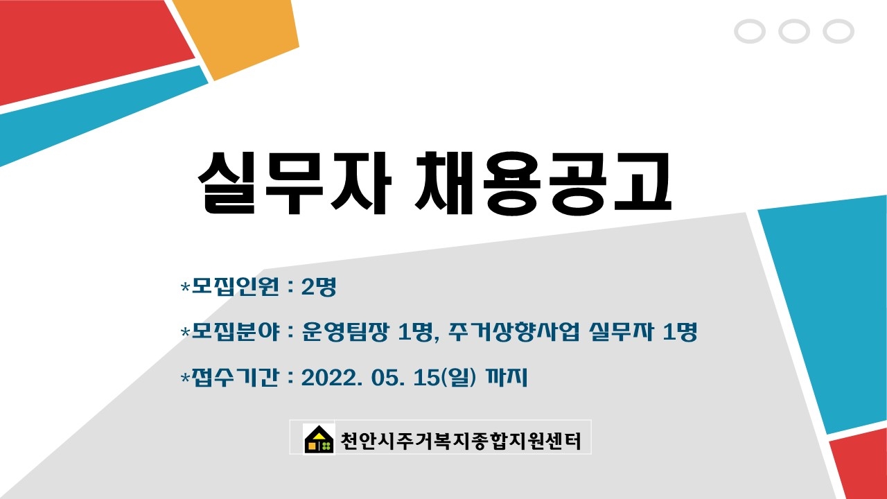 [채용공고] 천안시주거복지종합지원센터 실무자 채용 (마감)
